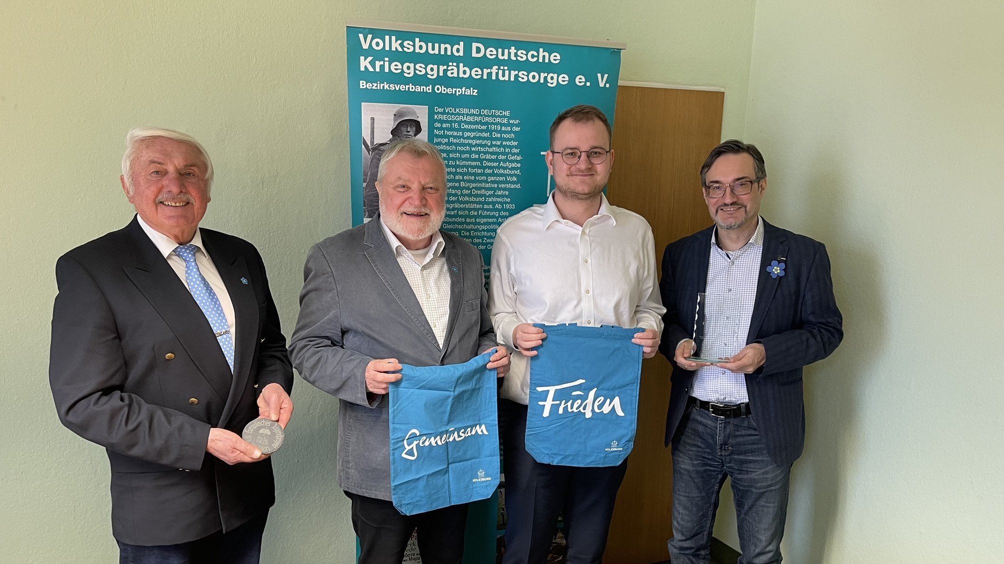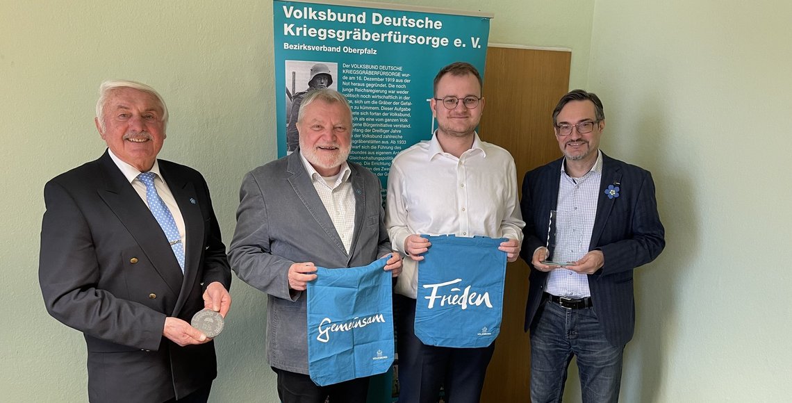 Anlässlich des Vorstandswechsels erfolgte Ende Februar in Regensburg dann der Antrittsbesuch des neuen in Begleitung des alten Vorstandes in der Bezirksgeschäftsstelle des Volksbundes. Die Freihunger Gäste wurden begrüßt durch den Bezirksverbandsvorsitzenden Abteilungsdirektor a. D. Richard Glombitza und den Bezirksgeschäftsführer für Oberpfalz/Niederbayern, Dr. Dario Vidojković. Die Gastgeber stellten dem neuen Vorsitzenden des EJPO, Timo Häusler, die vielfältige Arbeit des Volksbundes vor und überreichten ihm dazu u. a. Broschüren und Handreichungen des Volksbundes. Von Seiten des EJPO wurde als Zeichen der Dankbarkeit und Anerkennung für die erfolgreiche Zusammenarbeit Richard Glombitza eine Plakette des EJPO überreicht, Dr. Vidojković erhielt eine Ehrengabe. Die Gastgeber wünschten dem neuen Vorsitzenden für seine wichtige Tätigkeit viel Glück und Erfolg und drückten die Freude darüber aus, dass das EJPO damit auf eine zukunftssichere Grundlage gestellt wurde, auch freue man sich auf die weitere erfolgreiche Zusammenarbeit.
